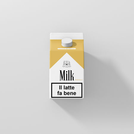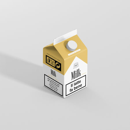 This is a personal graphic design project that plays with the style of cigarette packaging in an ironic and positive way. The idea comes from the famous message “Smoking kills”, changed here into “Milk is good”.
